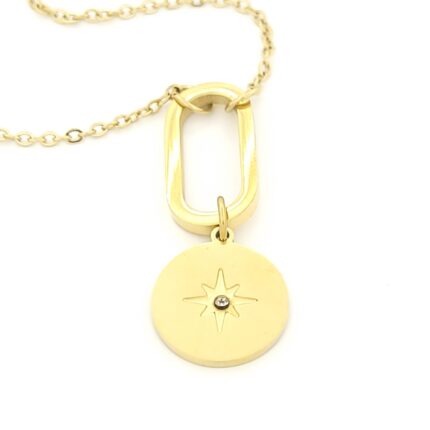 Ατσάλινο Επιχρυσωμένο Γυναικείο Κολιέ, Με Αστέρι Με Λευκό Ζιργκόν κωδ.106157
