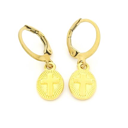 Ατσάλινα Επιχρυσωμένα Σκουλαρίκια Κρίκοι, Με Σταυρό κωδ.106152