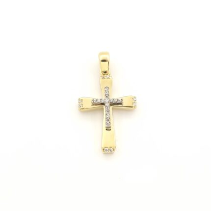 Χρυσός Γυναικείος Σταυρός Κ14, Με Λευκά Ζιργκόν κωδ.107489