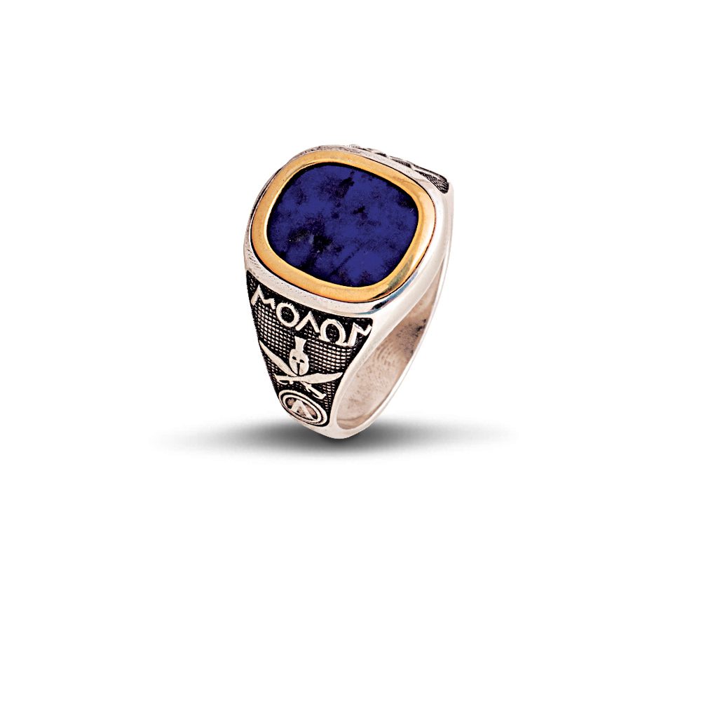 Ασημένιο Ανδρικό Δαχτυλίδι Dimitrios-Exclusive Mε Επίχρυσο Στεφάνι, Ημιπολύτιμη Πέτρα Και Την Επιγραφή Μολών Λαβέ κωδ.D78