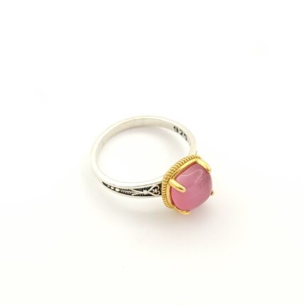 Γυναικείο Ασημένιο Δίχρωμο Δαχτυλίδι Dimitrios-Exclusive Με Τετράγωνη Ροζ Πέτρα Cat Eye κωδ.D182-2