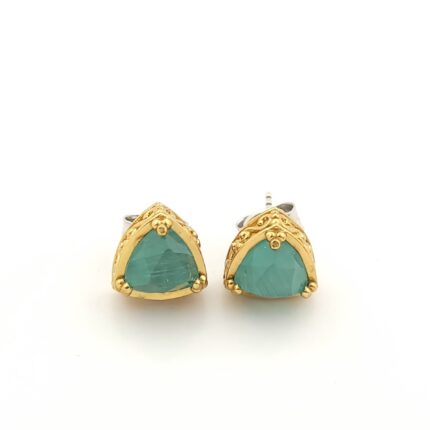 Ασημένια Επιχρυσωμένα Σκουλαρίκια Καρφωτά Dimitrios-Exclusive Με Ανοιχτό Σμαραγδί Cat Eye Σε Επίχρυσο Στεφάνι κωδ.S185