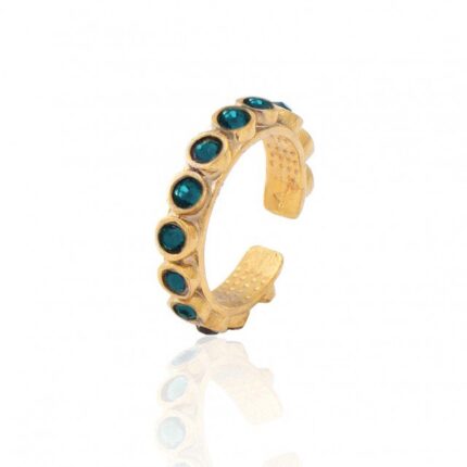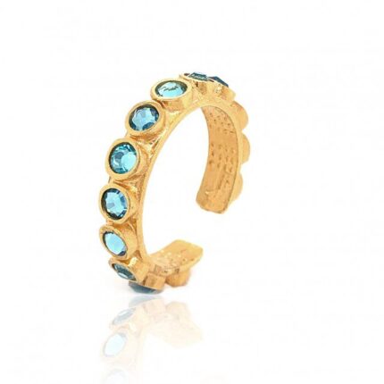 Ορειχάλκινο Χειροποίητο Δαχτυλίδι LifeLikes με Aqua Κρύσταλλα Swarovski Ορείχαλκος επιχρυσωμένος 18Κ Μεταβλητό-Σεβαλιέ min No.48 Εγγύηση Kirki Kosmima Guarantee