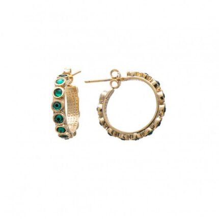 Ορειχάλκινα Χειροποίητα Σκουλαρίκια Κρίκοι LifeLikes με Πράσινα Κρύσταλλα Swarovski Ορείχαλκος επιχρυσωμένος 18Κ Διάμετρος 22mm Πάχος 4mm Εγγύηση Kirki Kosmima Guarantee