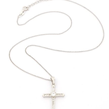 Ασημένιο Γυναικείο Κολιέ Luxor, Με Σταυρό Mε Ζιργκόν κωδ.104697