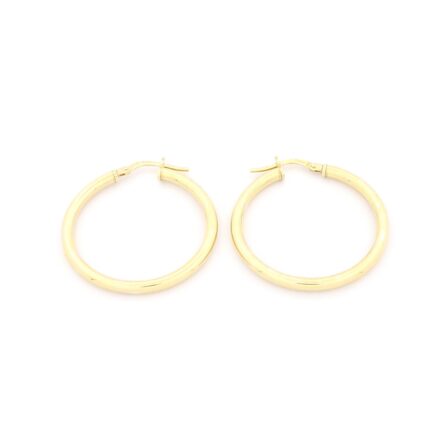 Ασημένια Επιχρυσωμένα Γυναικεία Σκουλαρίκια Κρίκοι της Luxor Ασήμι 925 3,1 γραμμάρια Διάμετρος 32mm Πάχος 3mm Εγγύηση Kirki Kosmima Guarantee