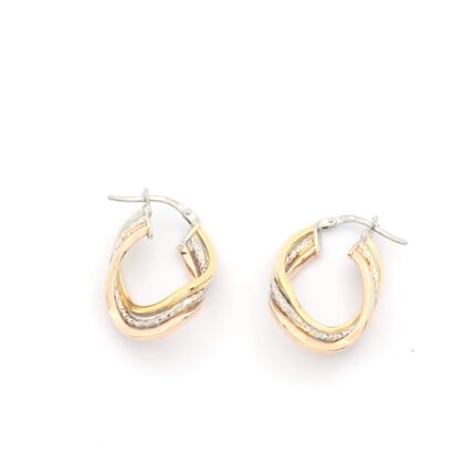 Ασημένια Τρίχρωμα Σκουλαρίκια Κρίκοι Οβάλ Luxor κωδ.101115