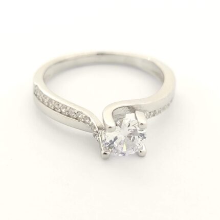 Ασημένιο Δαχτυλίδι Μονόπετρο Luxor με Άσπρα Ζιργκόν Ασήμι 925 2,2 γραμμάρια Νο16 Εγγύηση Kirki Kosmima Guarantee