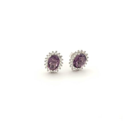 Ασημένια Γυναικεία Σκουλαρίκια Καρφωτά της Luxor, Ροζέτα Με Λευκά Και Μωβ Ζιργκόν κωδ.107822
