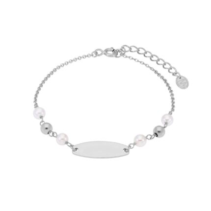 Ασημένιο Παιδικό Βραχιόλι-Ταυτότητα Marea, Με Πέρλες