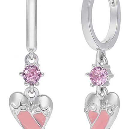 Ασημένια Παιδικά Σκουλαρίκια Κρίκοι Marea, Με Μπαλαρινάκια Με Σμάλτο Και Ροζ Ζιργκόν Ασήμι 925 Βάρος: 2.6 γραμμάρια Διαστάσεις: 25* 10mm Εγγύηση Kirki Kosmima Guarantee