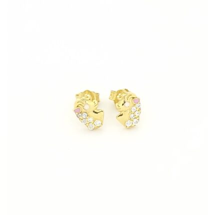 Χρυσά Παιδικά Σκουλαρίκια Καρφωτά Κ9,Με Μονόκερο Με Σμάλτο Και Λευκά Ζιργκόν κωδ.109281