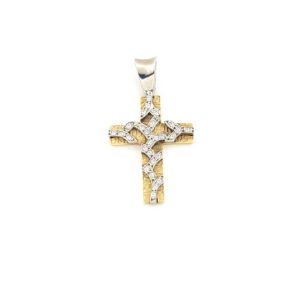 Χρυσός Γυναικείος Σταυρός Κ14 Δίχρωμος με Άσπρα Ζιργκόν κωδ.κα020124