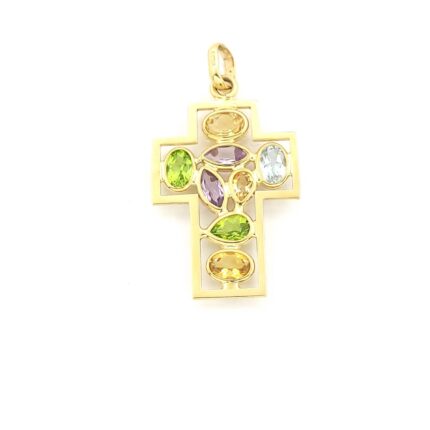 Χρυσός Γυναικείος Σταυρός Κ14 με Διάφορα Χρώματα Ζιργκόν κωδ.102073