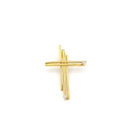 Χρυσός Γυναικείος Χειροποίητος Ματ Σταυρός Κ18 , Με Διαμάντια