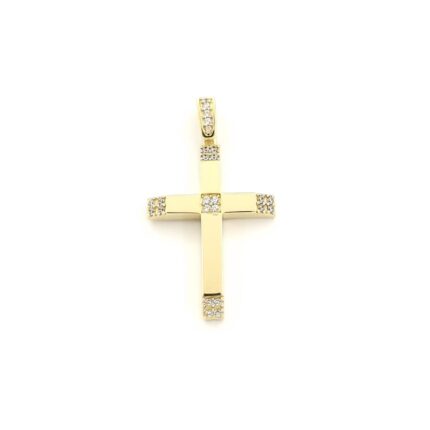 Xρυσός Γυναικείος Σταυρός Κ14 Διπλής Όψης, Ματ-Λουστρέ Με Λευκά Ζιργκόν κωδ.108848