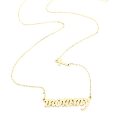 Χρυσό Γυναικείο Κολιέ Κ9, Με Μοτίφ "Μommy" Και Σταυρό Κ9 Βάρος: 1,6 γραμμάρια Μήκος: 43cm(41+2cm extension) Διαστάσεις Μοτίφ: 29*9mm Εγγύηση Kirki Kosmima Guarantee
