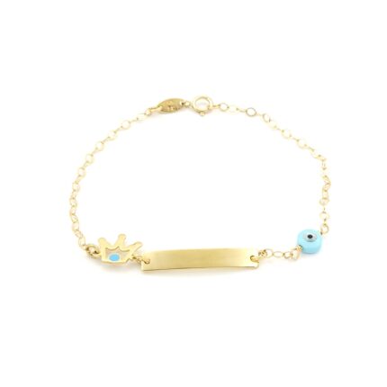 Χρυσό Παιδικό Βραχιόλι-Ταυτότητα Κ9, Με Ματάκι Και Κορώνα Με Γαλάζιο Σμάλτο κωδ.108866