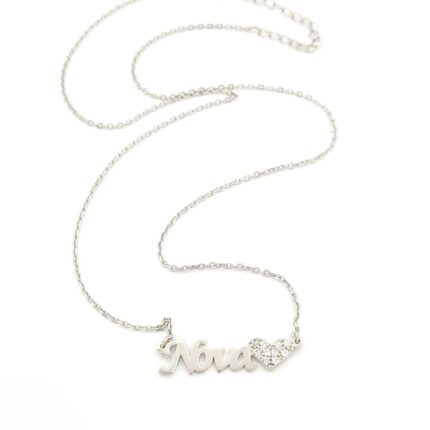 Ασημένιο Γυναικείο Κολιέ “Νονά”, Με Καρδιά Και Λευκά Ζιργκόν κωδ.108807
