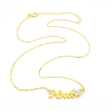 Ασημένιο Επιχρυσωμένο Γυναικείο Κολιέ “Νονά”, Με Καρδιά Και Λευκά Ζιργκόν κωδ.108808