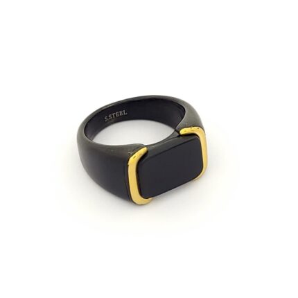 Ατσάλινο Μαύρο Ανδρικό Δαχτυλίδι, Με Μαύρη Πέτρα