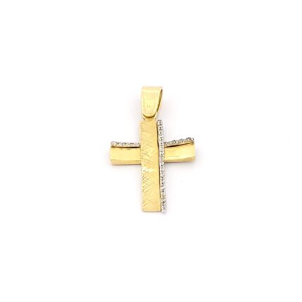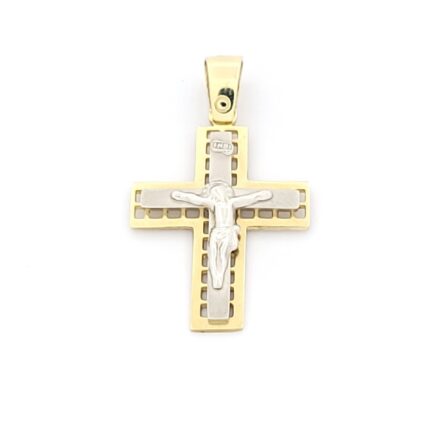 Χρυσός Σταυρός Κ14 Δίχρωμος Διπλής Όψης με Εσταυρωμένο κωδ.θχ021584