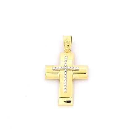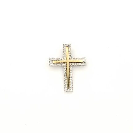 Xρυσός Γυναικείος Δίχρωμος Σταυρός Κ14, Με Λευκά Ζιργκόν κωδ.107538