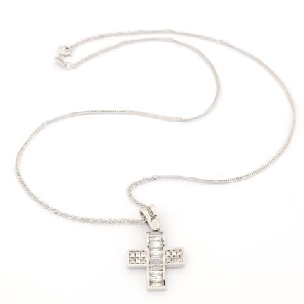 Λευκόχρυσο Γυναικείο Κολιέ με Σταυρό Κ9, Με Ζιργκόν κωδ.103984