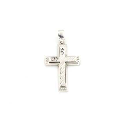 Λευκόχρυσος Γυναικείος Σταυρός Κ14 με Άσπρα Ζιργκόν κωδ.ΚΑ020878