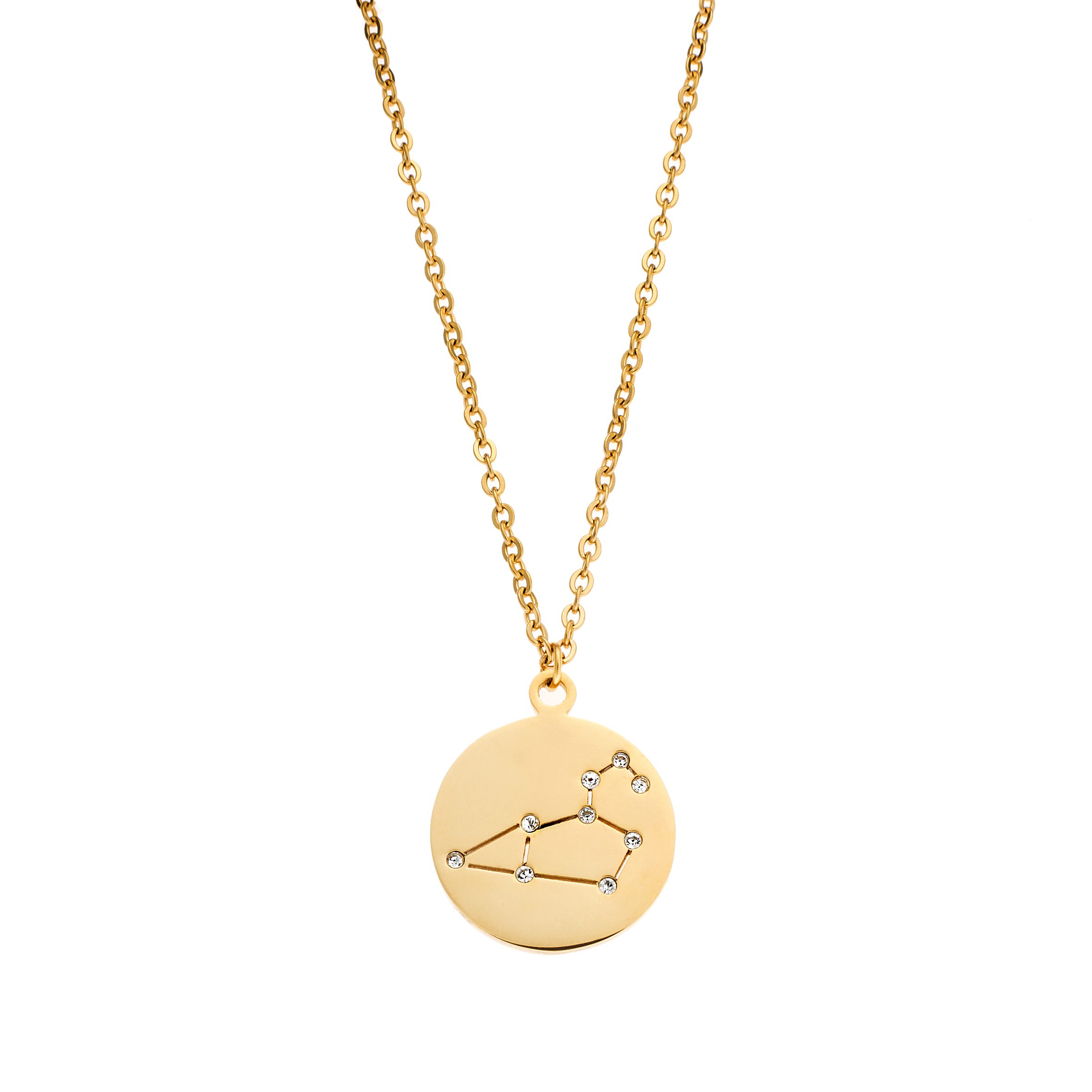 Ατσάλινο Επιχρυσωμένο Κολιέ Puppis Ζώδιο Λέων με Ζιργκόν Ανοξείδωτο ατσάλι Μήκος 45cm Εγγύηση Kirki Kosmima Guarantee