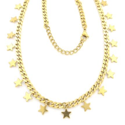 Ατσάλινο Γυναικείο Επιχρυσωμένο Κολιέ Puppis, Με Κρεμαστά Αστέρια Ανοξείδωτο ατσάλι Μήκος: 47cm (42+5cm extension) Εγγύηση Kirki Kosmima Guarantee