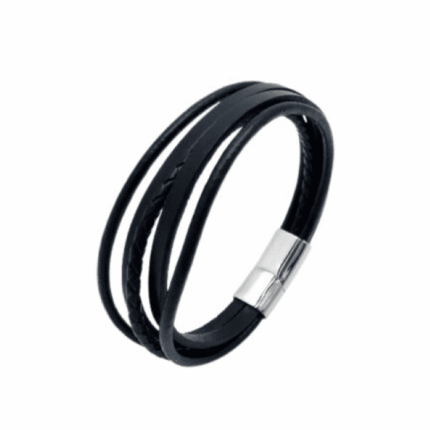 Ανδρικό Βραχιόλι Puppis Μαύρο Δερμάτινο με Κούμπωμα από Ατσάλι κωδ.PUB36200S