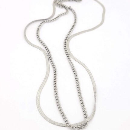 Ατσάλινο Γυναικείο Κολιέ Με Διπλή Αλυσίδα,Puppis κωδ.PUP17327S