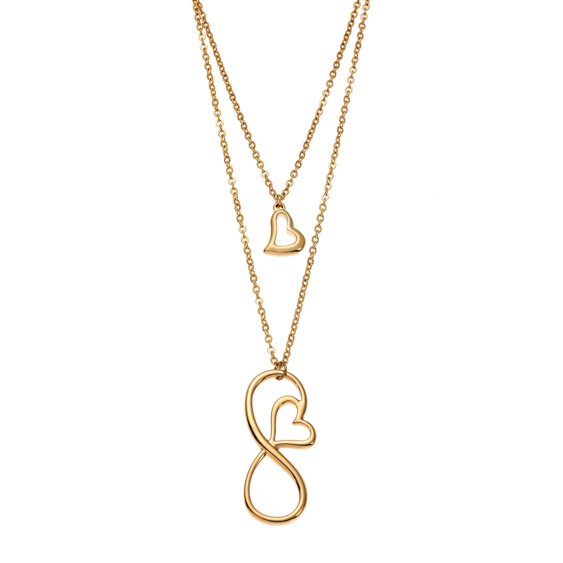 Ατσάλινο Επιχρυσωμένο Κολιέ Puppis Διπλό με Άπειρο και Καρδιές κωδ.PUP38672G