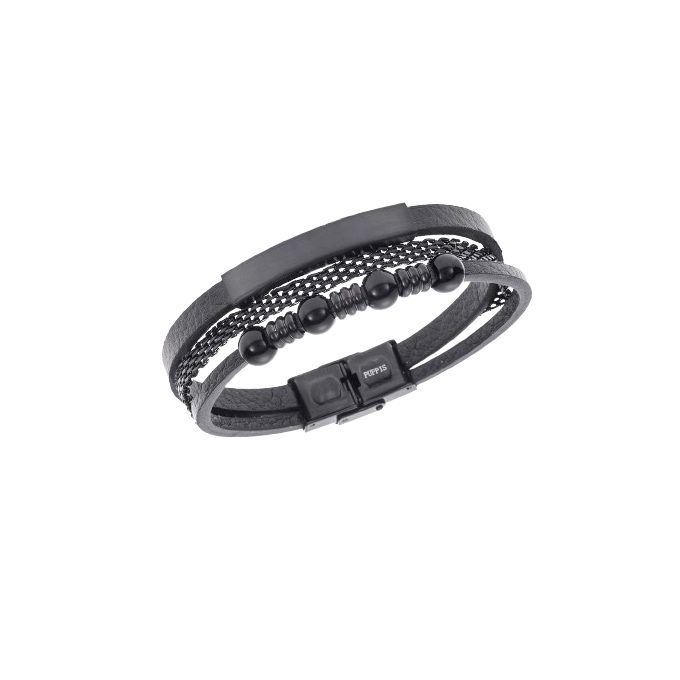 Μαύρο Δερμάτινο Ανδρικό Βραχιόλι-Ταυτότητα Puppis, Με Κούμπωμα Και Πλακέτα από Ατσάλι κωδ.PUB51525R