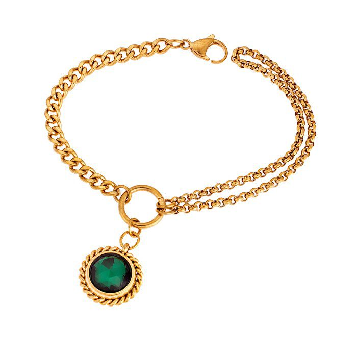 Ατσάλινο Επιχρυσωμένο Βραχιόλι με Πράσινο Ζιργκόν κωδ.PUB85382G