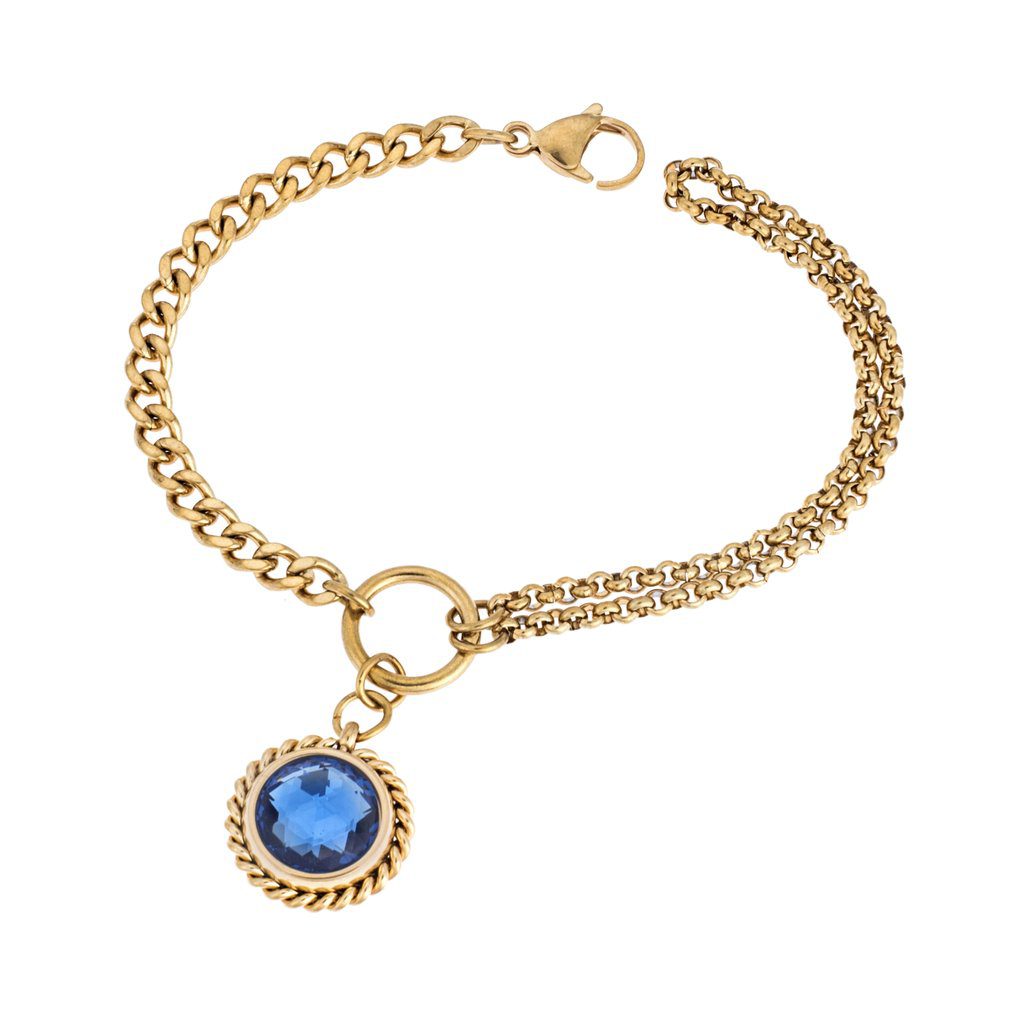 Ατσάλινο Επιχρυσωμένο Βραχιόλι με Μπλε Ζιργκόν κωδ.PUB85384G