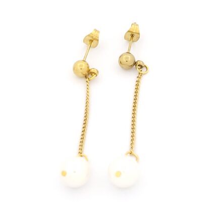 Ατσάλινα Επιχρυσωμένα Σκουλαρίκια Κρεμαστά Puppis, Με Πέρλες κωδ.PUW01548G