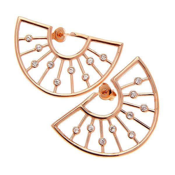 Ασημένια Ροζ Gold Γυναικεία Σκουλαρίκια Jacket Καρφωτά Της Slevori, Σε Σχήμα Βεντάλιας, Με Λευκά Ζιργκόν κωδ.102290