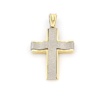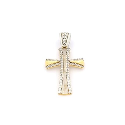 Λευκόχρυσος Δίχρωμος Γυναικείος Σταυρός Κ14 Val’Oro,Με Ζιργκόν κωδ.101908