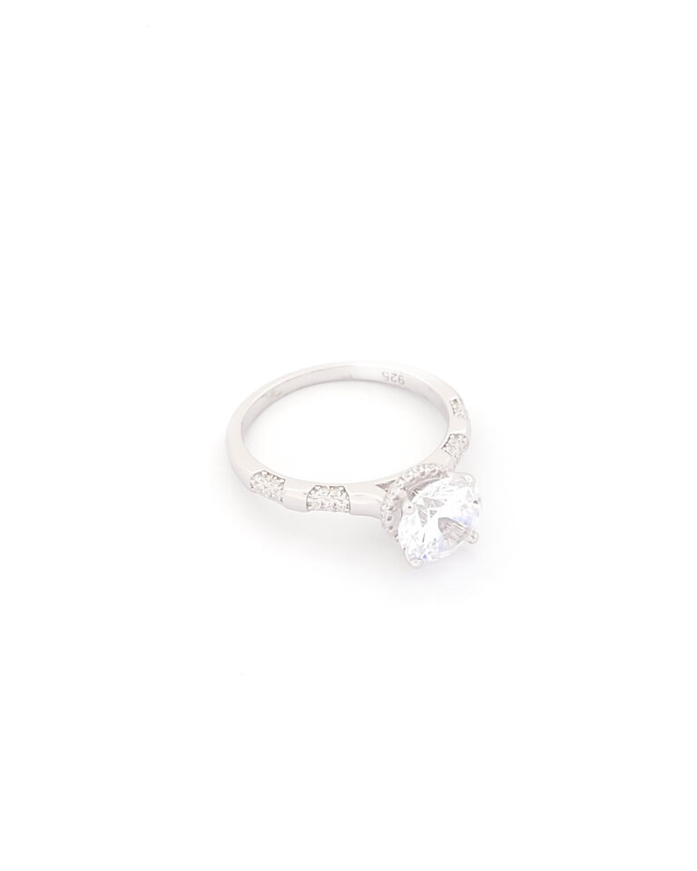 Ασημένιο Γυναικείο Δαχτυλίδι Μονόπετρο, Με Πλευρικές Πέτρες Ζιργκόν κωδ.109543