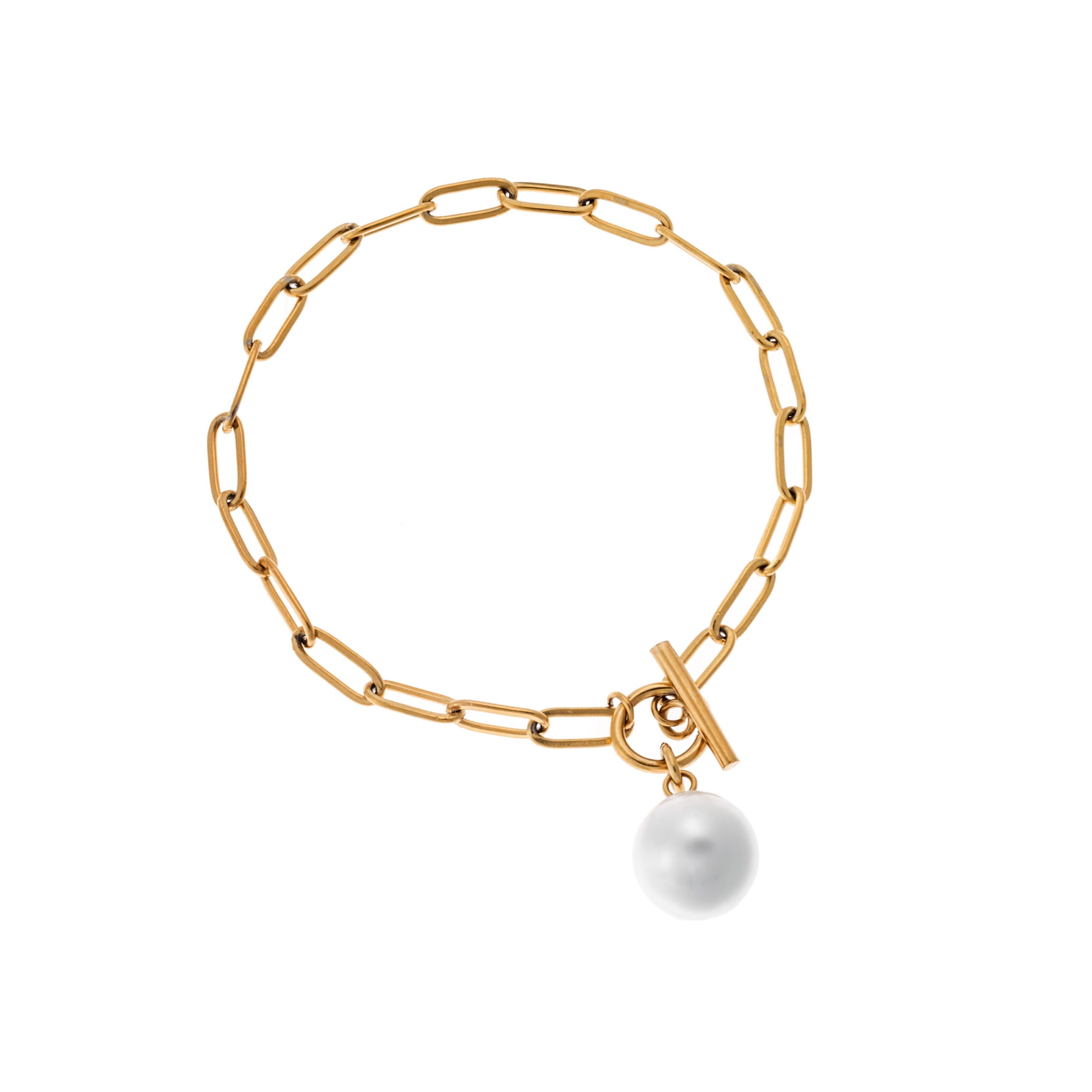 Ατσάλινο Eπιχρυσωμένο Βραχιόλι Με Πέρλα κωδ.PUB39654G