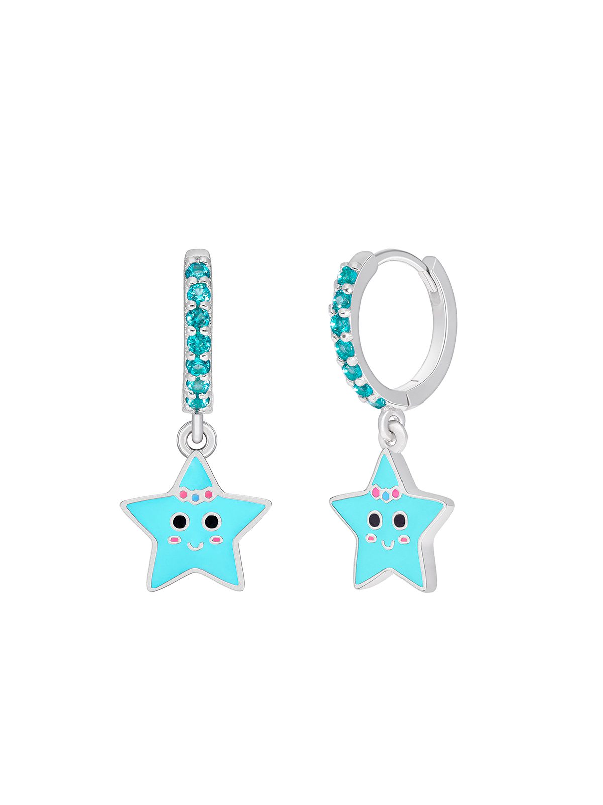 Ασημένια Παιδικά Σκουλαρίκια Κρίκοι Marea, Με Αστέρι Με Σμάλτο Και Γαλάζια Ζιργκόν κωδ.D03601/BN