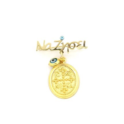 Χρυσή Παιδική Παραμάνα “Να Ζήσει” Κ9, Με Κωνσταντινάτο, Ματάκι Και Γαλάζιο Ζιργκόν κωδ.108390