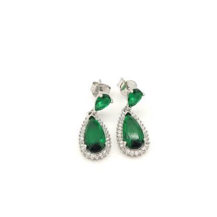 Ασημένια Γυναικεία Σκουλαρίκια Κρεμαστά Δάκρυ, Με Πράσινα Και Λευκά Ζιργκόν κωδ.107837