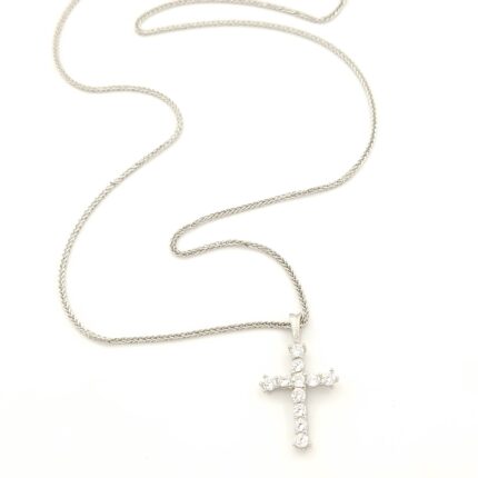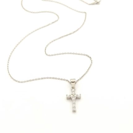 Ασημένιο Γυναικείο Κολιέ, Με Σταυρό Με Λευκά Ζιργκόν κωδ.107847