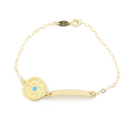 Χρυσό Βραχιόλι-Ταυτότητα Κ9 Με Κωνσταντινάτο Και Γαλάζιο Σμάλτο