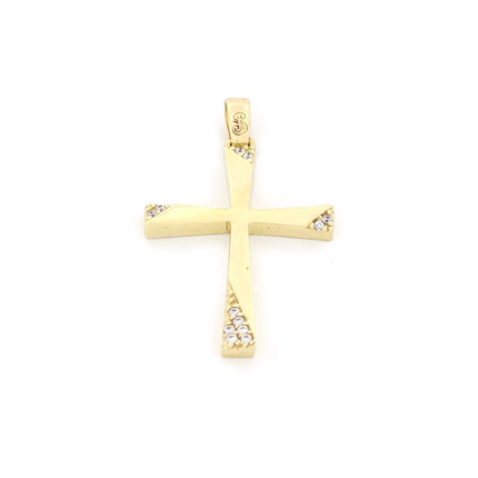 Xρυσός Γυναικείος Σταυρός Κ9, Λουστρέ Με Λευκά Ζιργκόν κωδ.109665