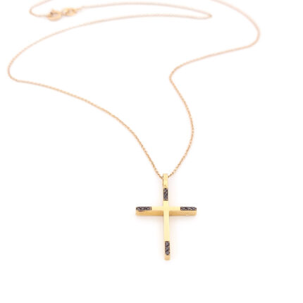 Ροζ Gold Γυναικείο Κολιέ Κ18, Με Σταυρό Και Μαύρα Διαμάντια κωδ.109758