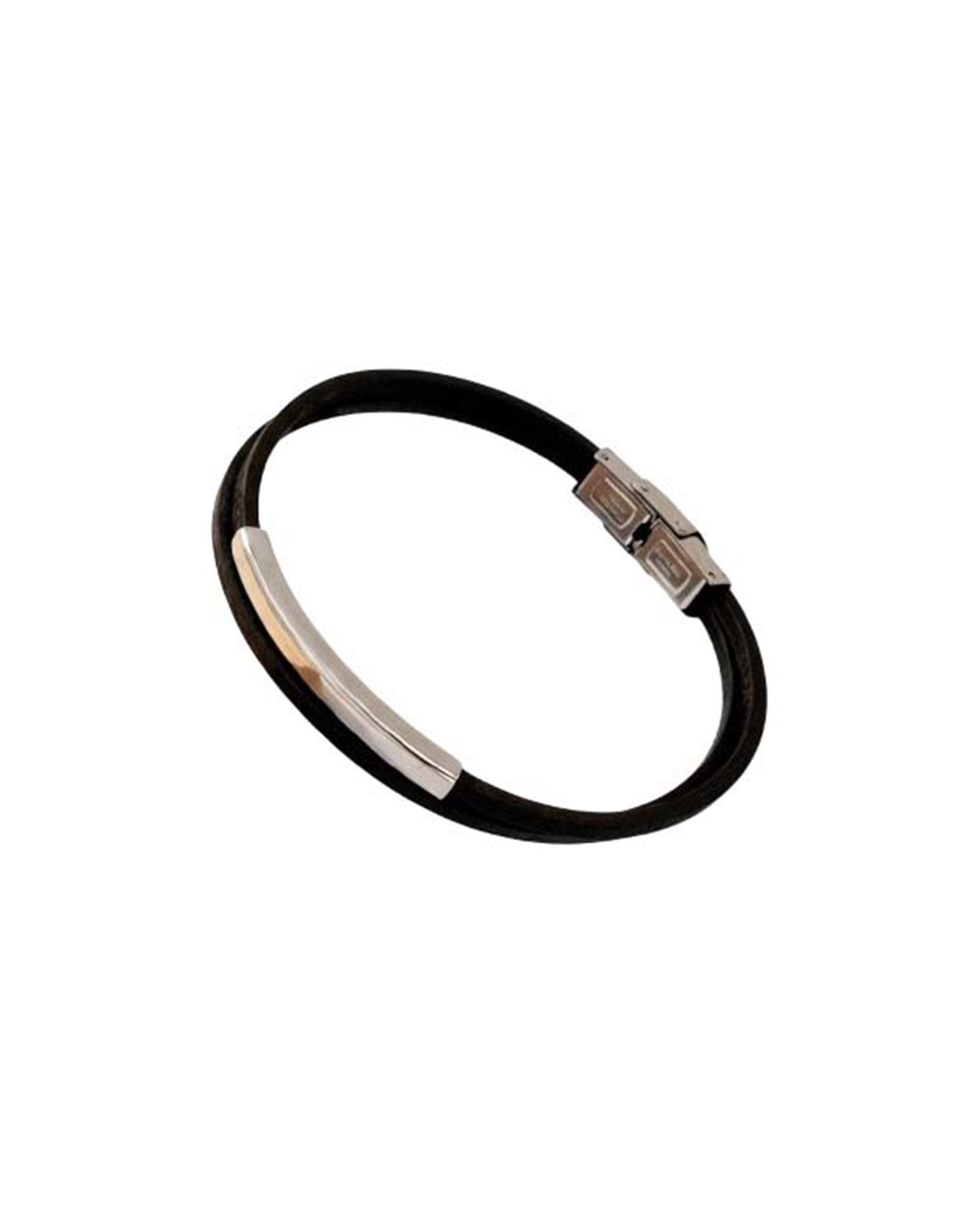 Ανδρικό Βραχιόλι – Ταυτότητα Puppis με Ατσάλι Και Μαύρο Δέρμα Κωδ.PUB02375S